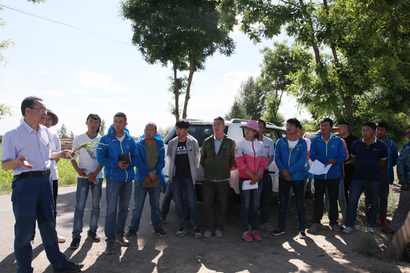 2017年張掖市多成農業(yè)有限公司組織各部門員工對本年度生產基地長勢進行觀摩,并邀請市、區(qū)種子部門專家對田間長勢、病蟲害進行分析、查看。 苗期長勢喜人~期待豐收! 專家為公司員工講解玉米蟲害。 專家對玉米病害進行分析。 |