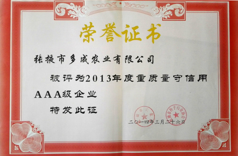 您現(xiàn)在的位置: 張掖市多成農(nóng)業(yè)有限公司 >> 資質(zhì)榮譽(yù) >> 公司榮譽(yù) >> 正文 |