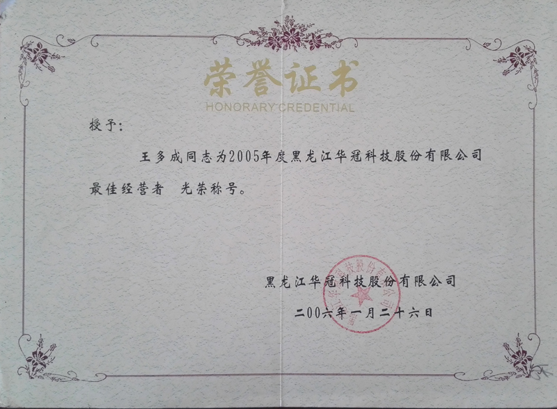 2005年度黑龍江花冠科技股份有限公司最佳經(jīng)營者 | ||