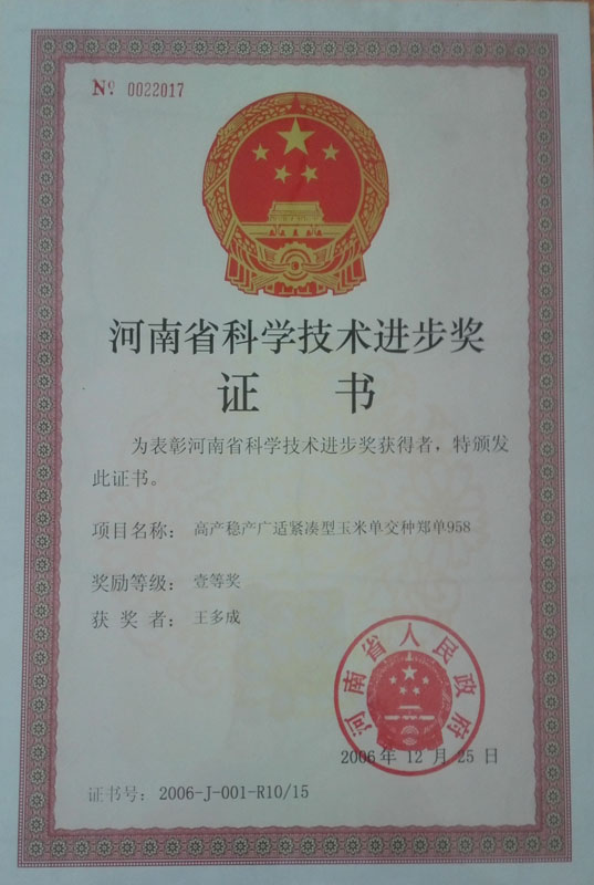 2006年榮獲河南省科學(xué)技術(shù)進(jìn)步獎(jiǎng) | ||